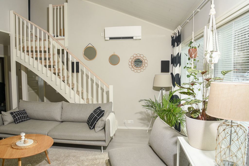 Ilmalämpöpumppu toimii ympärivuotisena ratkaisuna. Talvella se tukee päälämmitysjärjestelmää tai toimii itsenäisenä lämmönlähteenä, ja kesällä se parantaa asumismukavuutta viilentämällä sisätiloja hallitusti.